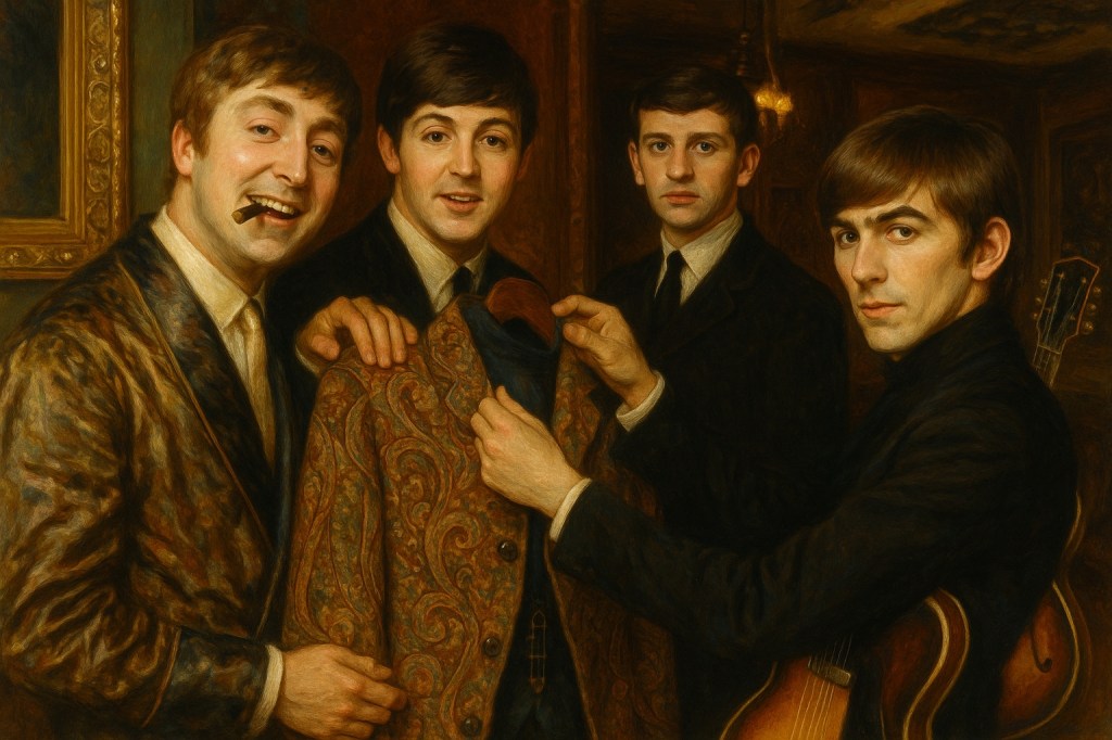 Cette œuvre imaginaire transpose exactement cette posture : les Beatles sont peints non pas comme musiciens, mais comme figures sociales en devenir, presque comme de jeunes notables de Liverpool.