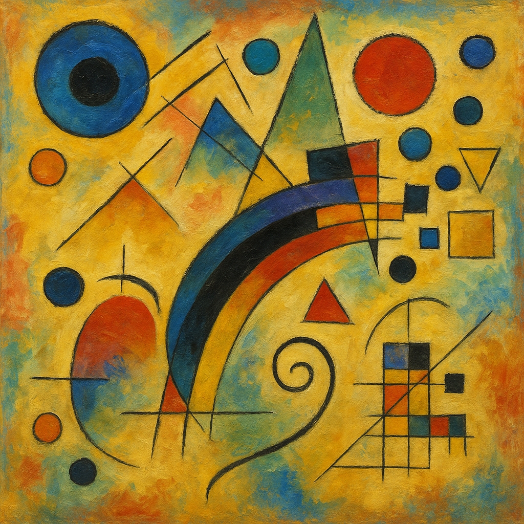 Kandinsky explore les correspondances entre sons, formes et couleurs. Il oppose lignes droites et courbes, masses colorées et vides, pour créer des œuvres qui évoquent symphonies, improvisations ou compositions musicales. Il privilégie l’émotion pure, l’invisible rendu visible.