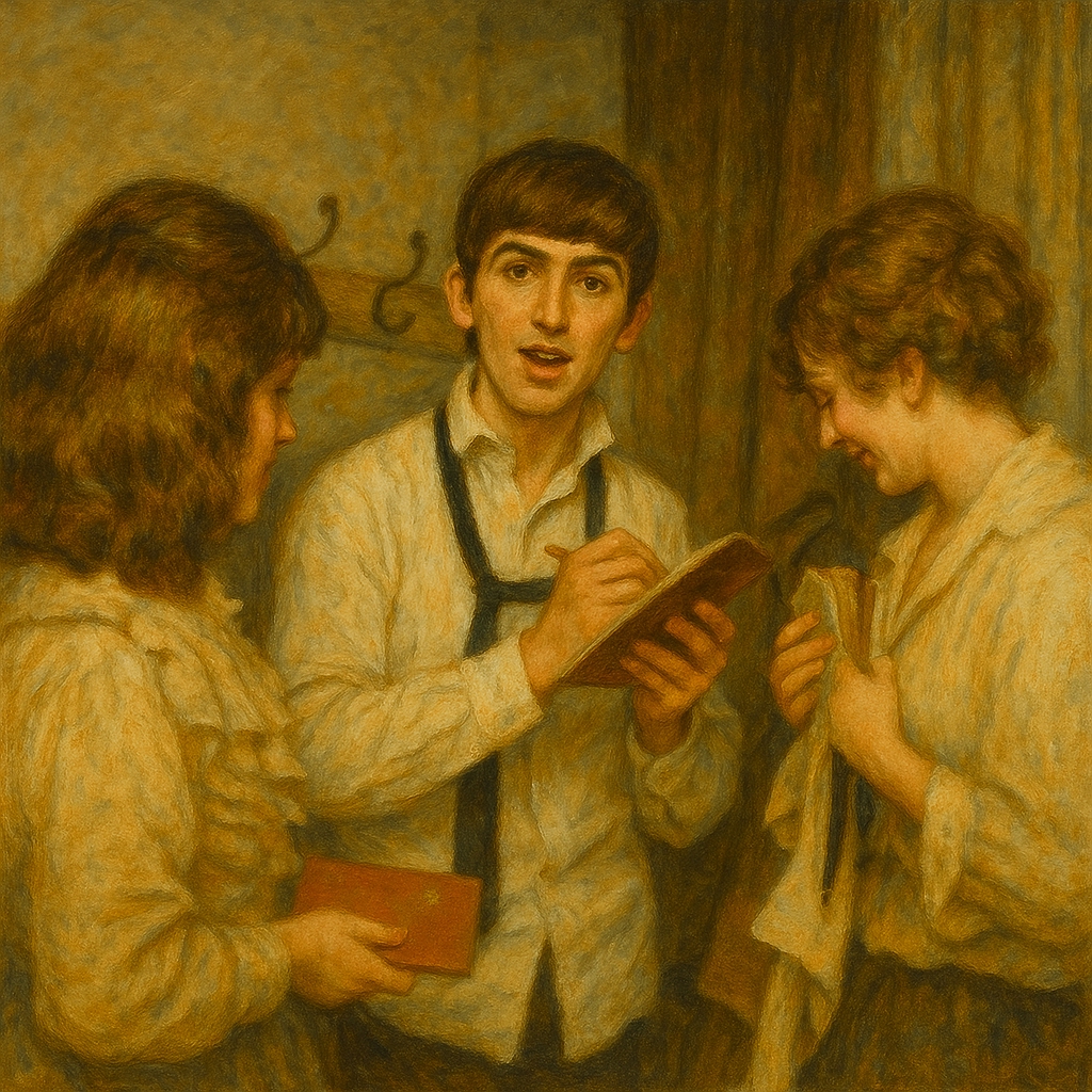 L’aspect mystérieux de cette peinture réside dans son anachronisme : les figures représentées correspondent étonnamment aux Beatles en 1963, photographiés à cet endroit exact par Dezo Hoffmann. Bien qu’impossible chronologiquement, ce tableau est aujourd’hui interprété comme une métaphore visionnaire de la célébrité en devenir — une anticipation poétique des mutations culturelles à venir.