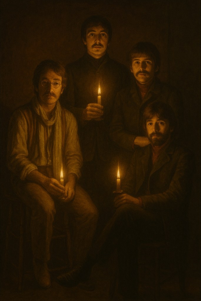 Sous la lueur fragile d’une chandelle, La Tour transforme les Beatles en figures de méditation éternelle.